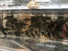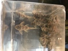 Ils ont été placé dans un 100L cuve nue avec un fort brassage + 5000L/h, nourrissage 3 fois par jours et changement d’eau 50% tous les 2 jours.